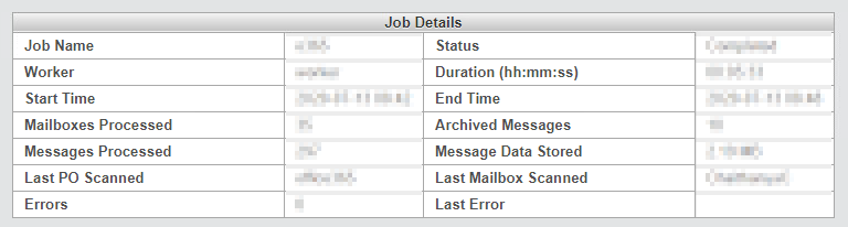 Path: Retain Reporting and Monitoring Server > Home > select a listed Job > select a Job Run ID— the Job Mailbox Summary panel for the selected run displays directly below the Job Details panel.