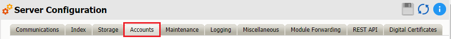 Path: Retain Server Manager > Configuration > Server Configuration > Accounts Tab