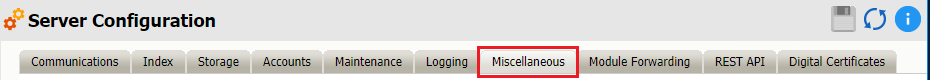 Path: Retain Server Manager > Configuration > Server Configuration > Miscellaneous Tab