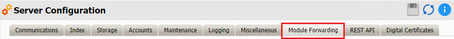 Path: Retain Server Manager > Configuration > Server Configuration > Module Forwarding Tab