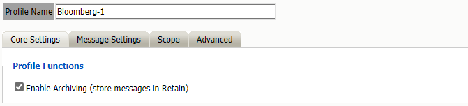 Path: Retain Server Manager > Data Collection > Profiles > Bloomberg > Select the Profile > Core Settings