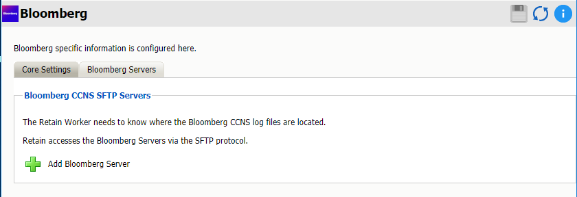 Path: Retain Server Manager > Configuration > Module Configuration > Bloomberg-Configure > Core Settings