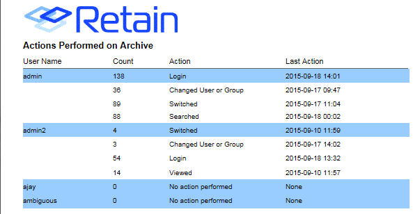 Path: Retain Reporting and Monitoring Server > Report or Schedule Report > Archive Summary by User