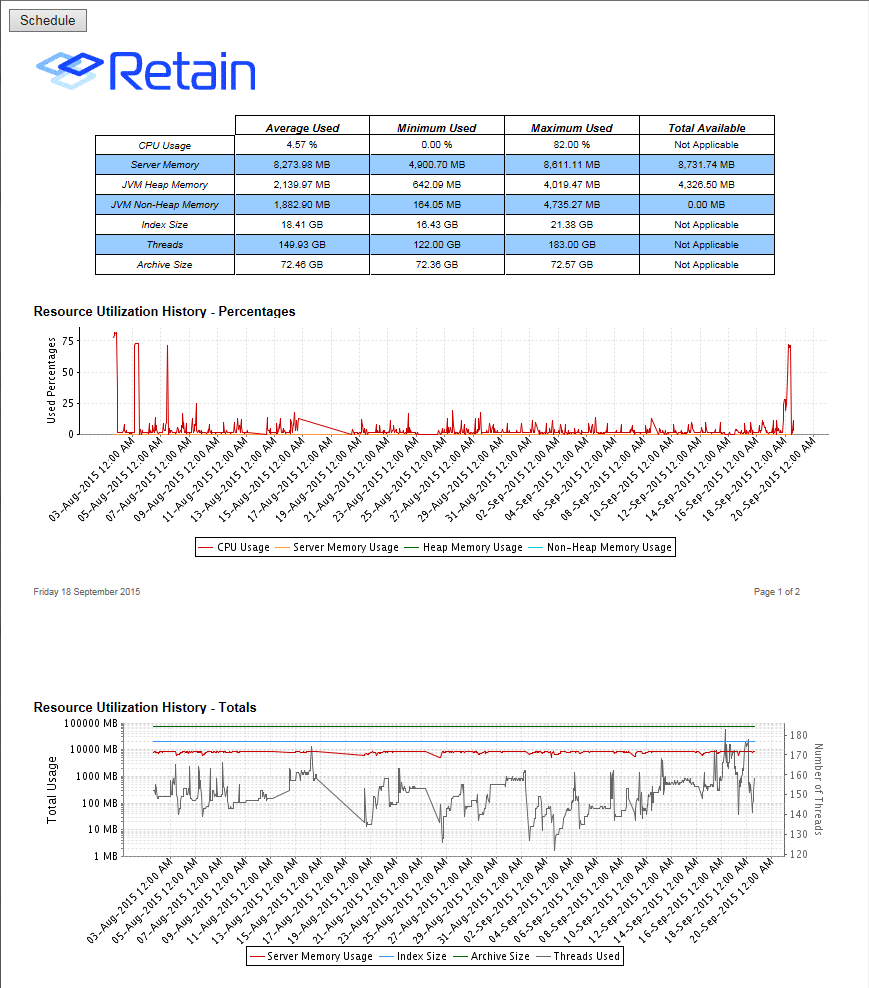 Path: Retain Reporting and Monitoring Server > Report or Schedule Report > Server Utilization