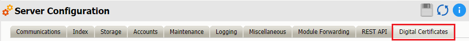 Path: Retain Server Manager > Configuration > Server Configuration > Digital Certificates Tab