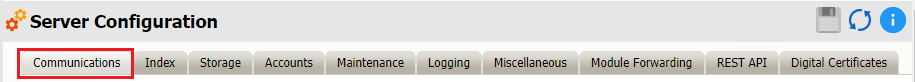 Path: Retain Server Manager > Configuration > Server Configuration > Communications Tab