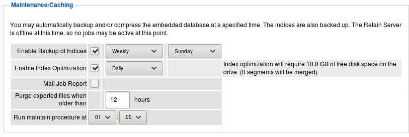 Path: Retain Server Manager > Configuration > Server Configuration > Maintenance Tab > Maintenance/Caching Panel