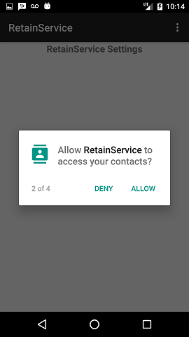 The Retain APK requires permission to access certain areas of the device. RetainService needs to be allowed to: