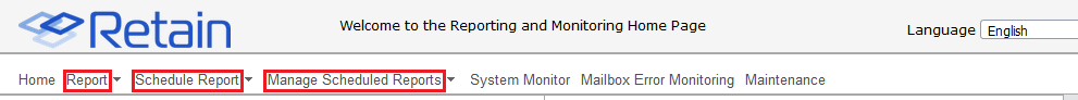 Path: Retain Reporting and Monitoring Server > Report or Schedule Report or Manage Scheduled Reports
