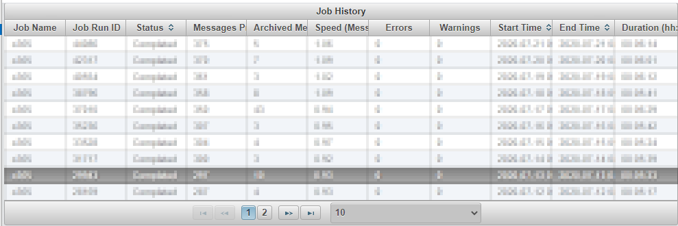 Path: Retain Reporting and Monitoring Server > Home > select a listed Job > select a Job Run ID— the Job Details panel for the selected run displays directly below the Job History panel.