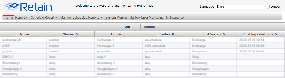 Path: Retain Reporting and Monitoring Server > Home > select a listed Job