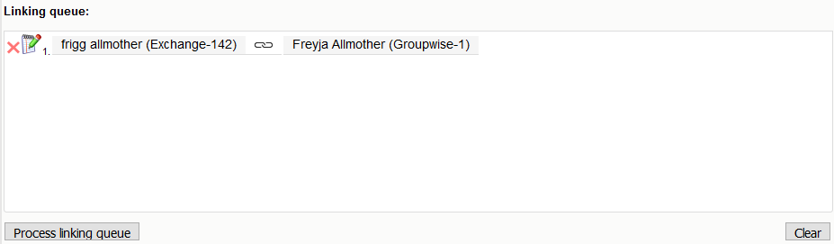Press the “Add to linking queue” button to add the selected accounts to the linking queue. You may press the red X to remove a link from the queue.