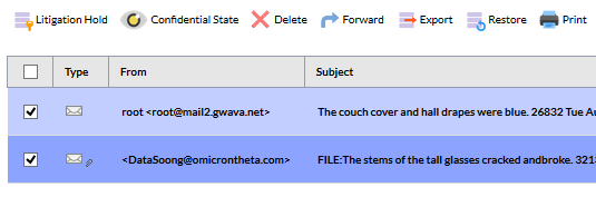 Individual or groups of items may have litigation hold applied by a user with the litigation hold right, for example the admin user.