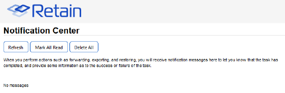 Notifications are automatically sent to the administrator whenever data in Retain is moved. Moving data consists of system migration, exporting, forwarding, restoring, and publishing. By default, the address used is the address supplied during severs activation.