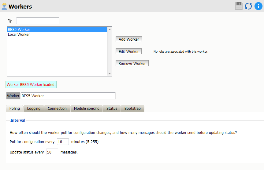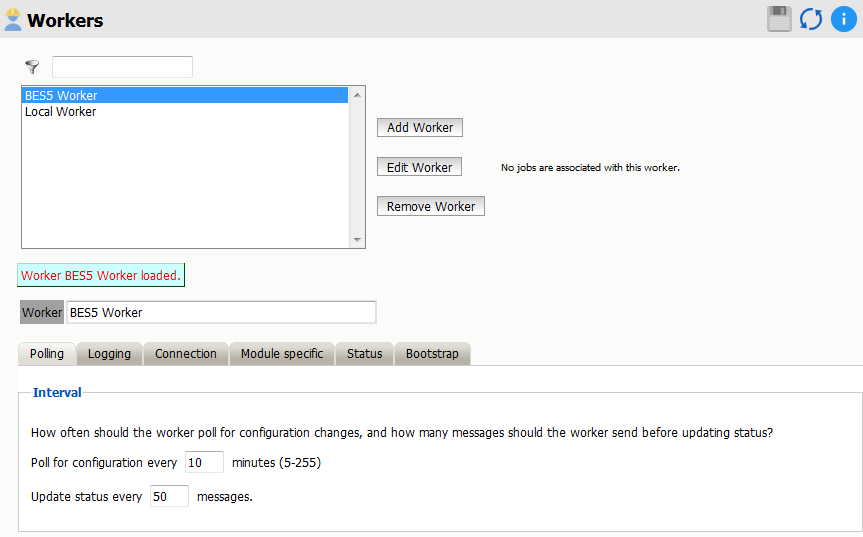 Status – Basic status information on the Worker. This status information is updated while the worker is running according to the “Update Status” interval described above.