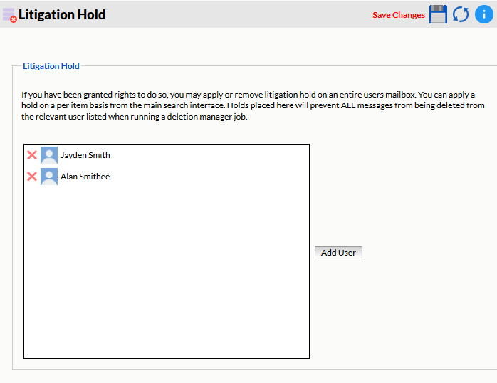 Litigation hold prevents a mailbox and its associated data from being deleted until the hold is released. This will prevent items from being removed from disk by Mailbox Deletion, Item Deletion or by users with the Delete Messages rights. If Data Removal is run and disk space does not increase it may be because items are under Hold. Items not removed because of a hold will be shown in the RetainServer log.
