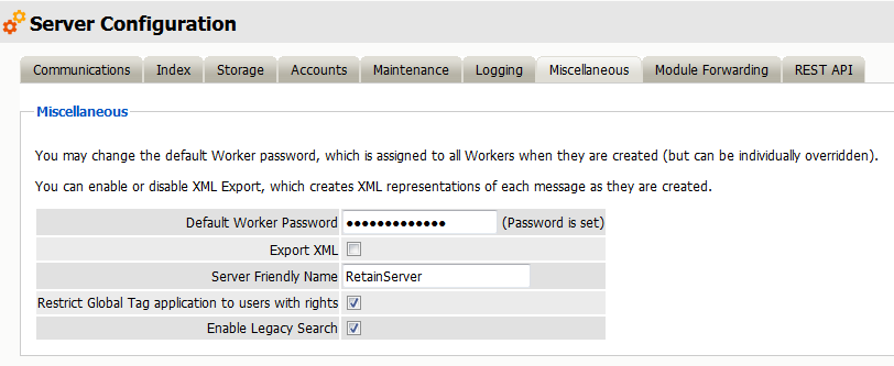 This XML Export function is included in Retain in case you have an XML compliance mandate. You enable it here.