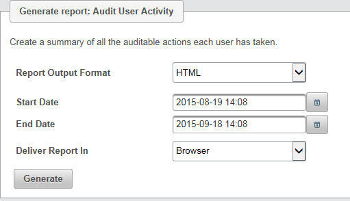 When the settings are as desired select the ‘Generate’ button to create the report.
