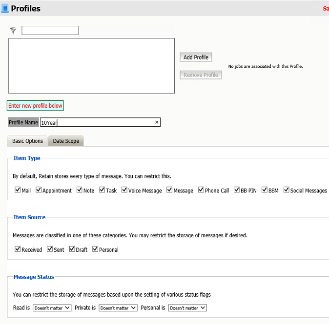 • Expiration Date:This date is set by your Retain server and is based on when the message is stored in Retain. Configure this in the Job | Core Settings tab. This date will be set in the future.