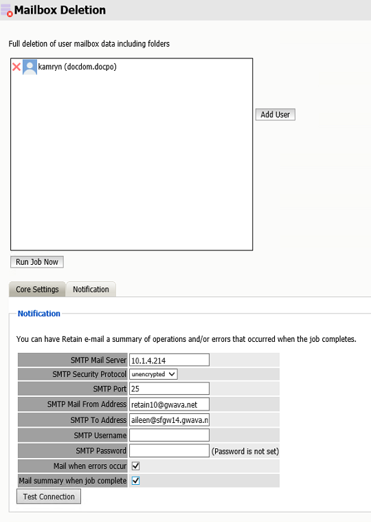 Mailbox Deletion will delete one or more entire mailboxes from Retain.