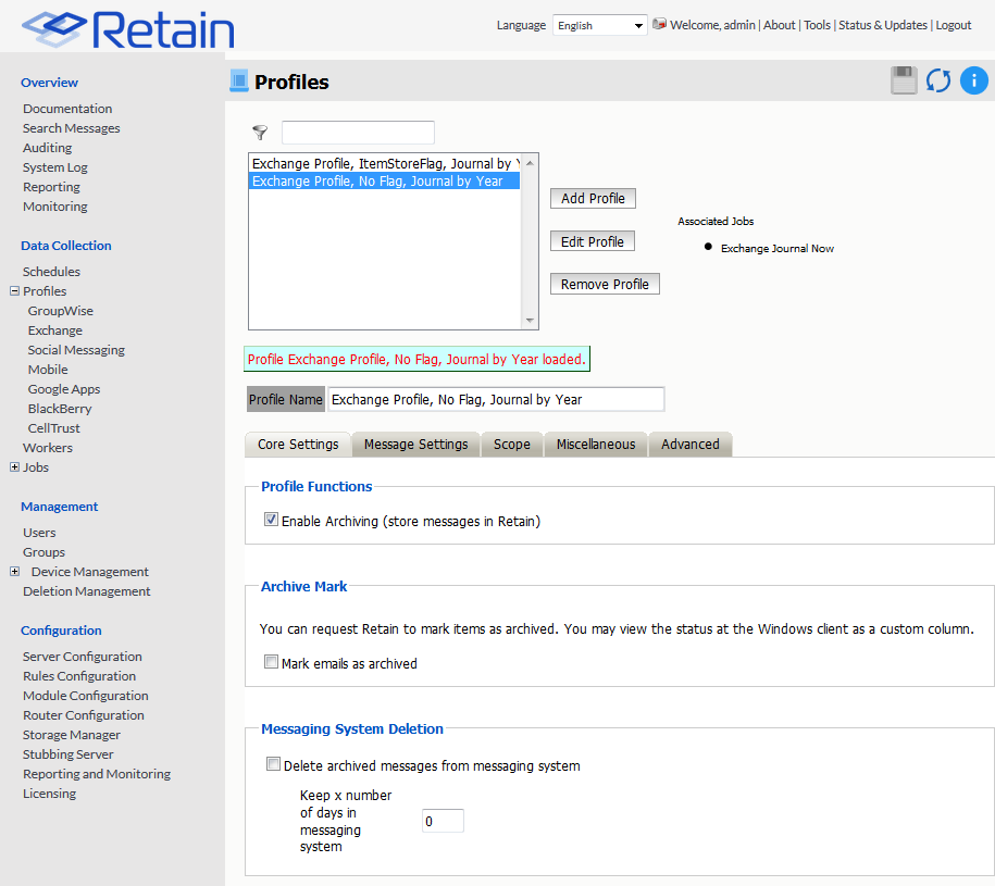 Important note: As Retain archives the journal mailbox it creates a list of messages to be deleted but will only send the delete request when it exits the mailbox. If the job fails before it exits then the messages won't be deleted. Limiting the scope of the job to allow Retain to finish the job successfully will ensure that the messages are deleted.