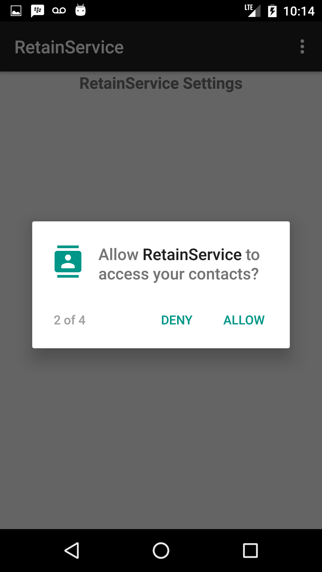 Automatic registration is done through our Cloud Registration Service (CMS). This registration method requires no end user intervention and ideally, the user should not be aware of the registration process. Automatic registration requires four mandatory values to be provided in the device management page at the time of registration: display name, email address, phone number and IMEI number. Before attempting an automatic registration, ensure that the RetainService application is installed on the Android device.