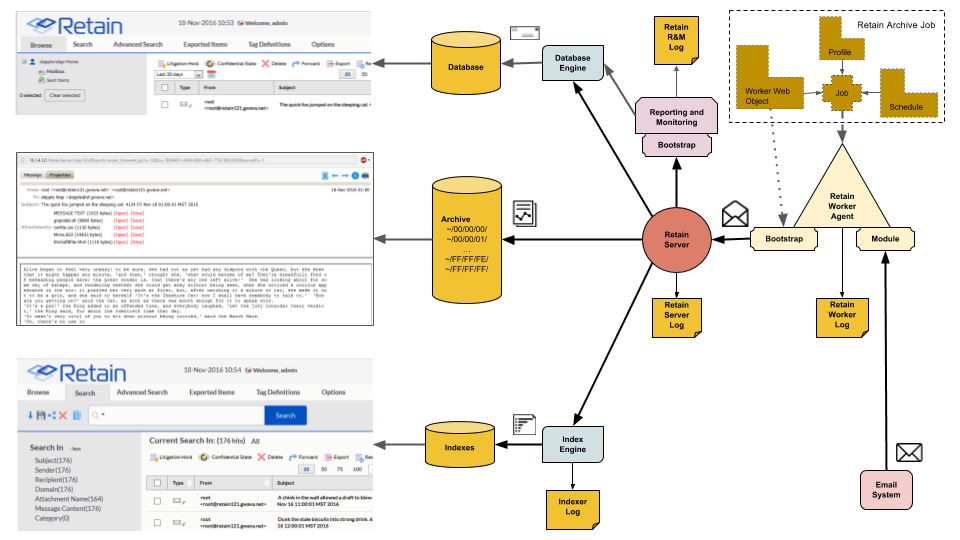 Each major part of Retain keeps logs of what is happening the primary ones being the RetainServer, RetainWorker, Indexer and the Reporting and Monitoring log as RetainStatServer.