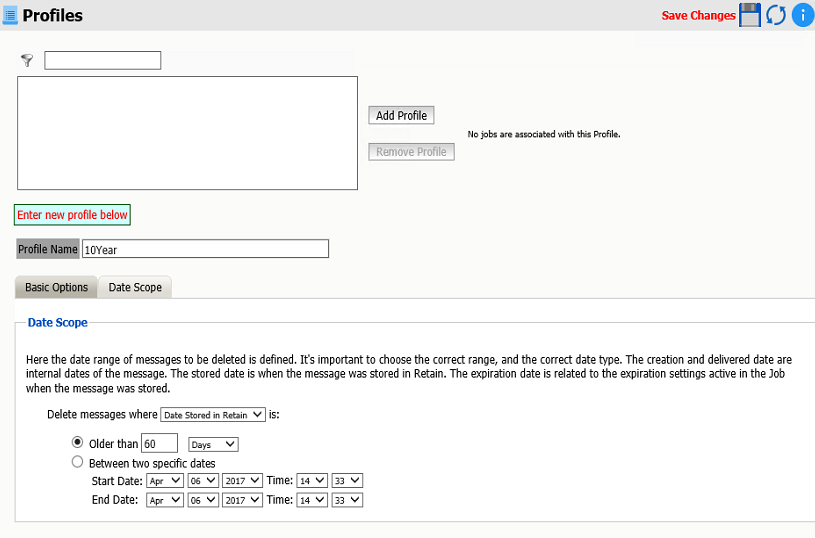 The profile sets the type and age of the items to be deleted.