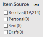 The Item Source criteria option limits the results to a particular source. This source can be limited to show ‘received’, ‘personal’, ‘sent’, or ‘draft’ items.