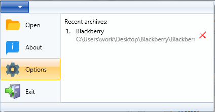 To access an archive, select the ‘open’ button from the top toolbar, or select the ‘Open’ option from the ‘File’ dropdown menu.