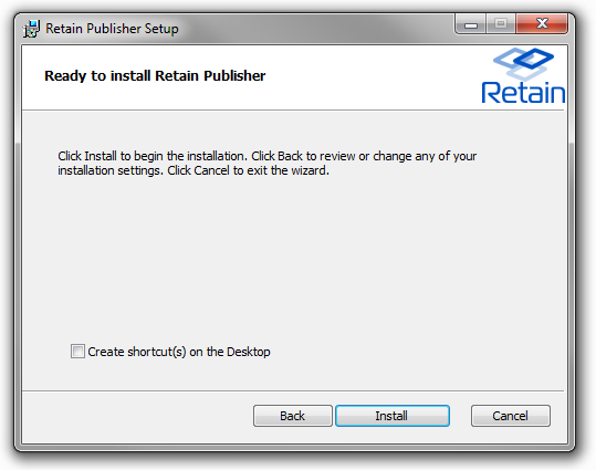 The Retain Publisher installation is very similar to the Viewer installation. Basic questions are asked, and the installer checks for .NET 3.5 SP1 before copying or installing any files. Click ‘Next’ to continue.