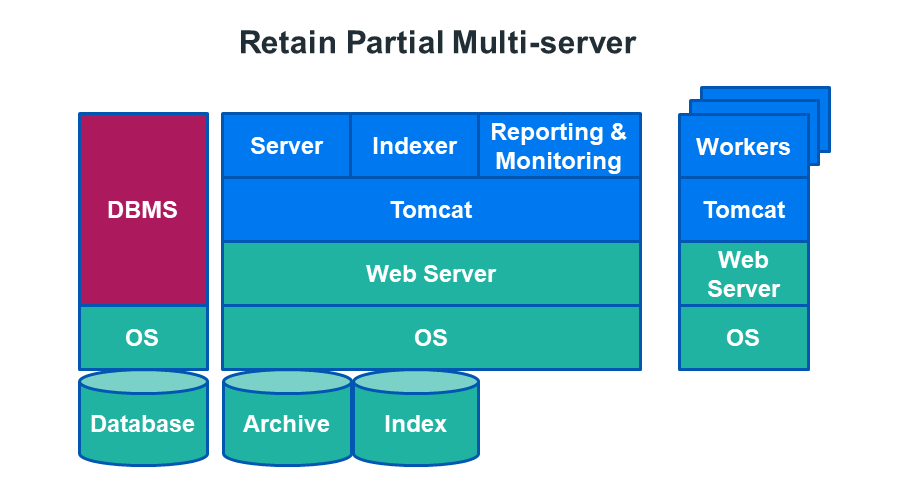 A larger system that already has a dedicated database server and several post offices may connect Retain to the existing database server and install multiple worker agents on other server(s). We recommend one worker agent per post office.