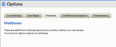 In this section, you’re shown the mailboxes you have been given explicit rights to work in. By default, you have rights to only your own mailbox. If an administrator explicitly gives you rights to other mailboxes or you are a member of a group that has rights to other mailboxes explicitly, those mailboxes will be shown here.