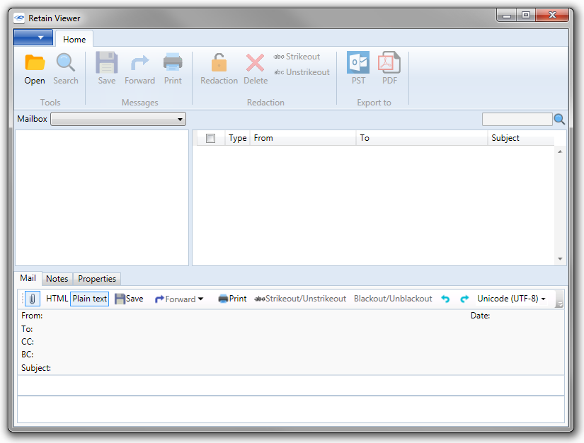 Retain Viewer can export selected files and messages from a mailbox or archive to a PDF or PST archive file.