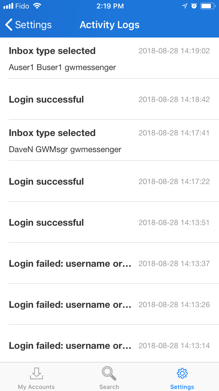 Pressing “My Accounts” will take you to the Retain archive mailboxes you have access to.