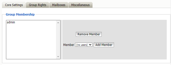 This screen works exactly like the user’s access to mailboxes. Please see the user’s mailbox section for details on how to select which mailbox or mailboxes to assign to the group.