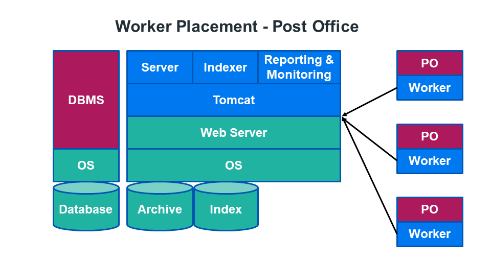 A Worker can be installed on a post office server. This frees up resources for the Retain server and reduces network bandwidth requirements.