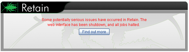 Some potentially serious issues have occurred in Retain. The web interface has been shutdown, and all jobs halted.