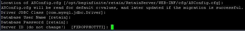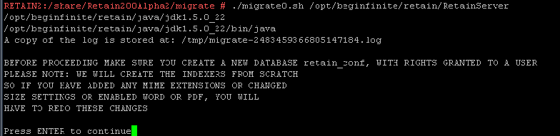 After selecting ‘yes’, the migration utility will setup the retain database with the information just provided along with the current configuration settings in the Retain 1.x configuration database.
