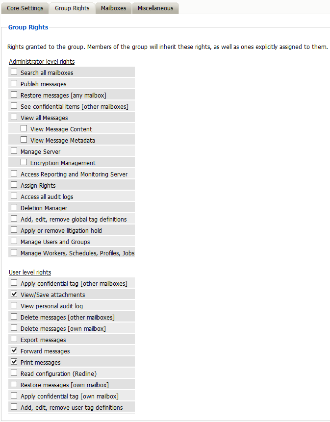 To log into and manage or monitor Workers, a User or Group must have the manage workers, Schedules, Profiles, Jobs right. To set or work with the Deletion Manager, the user must likewise have the Deletion Manager right, or they will not be able to modify those settings.