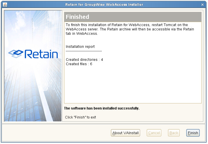 Retain requires two folders to be created, as well as the permissions set to match, on the GroupWise server.