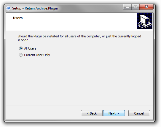 The Retain plugin may be used instead of the GroupWIse Archive. To hide the GroupWise Archive in favor of the Retain Archive, select the box and click 'Next' to continue.