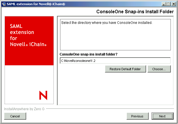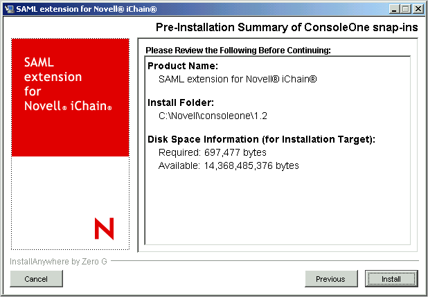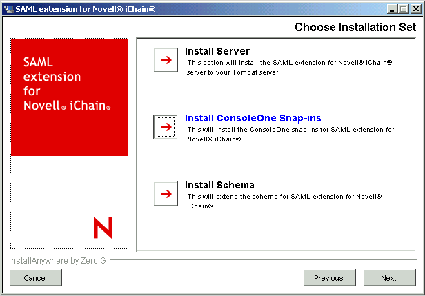Install ConsoleOne Snap-Ins: This option installs the ConsoleOne snap-ins used to administer the SAML extension components.