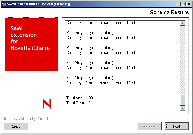 Install Schema: This option extends the eDirectoryTM schema to include the SAML configuration object definitions.