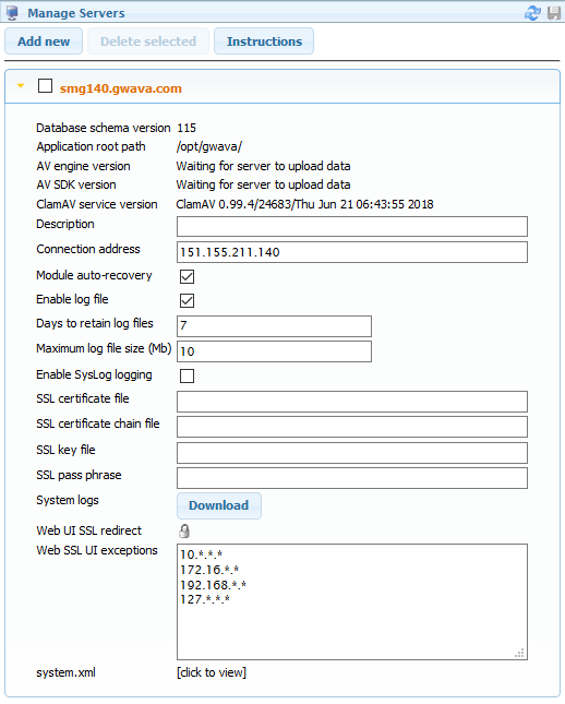 system.xml: Server information for recovering a Secure Messaging Gateway server.