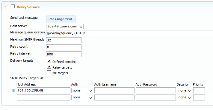 Host Address: Enter the IP address of the SMTP relay target server.