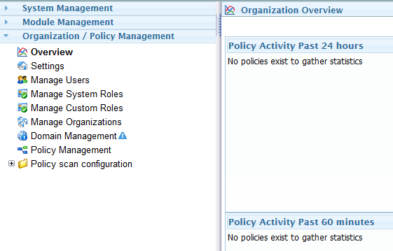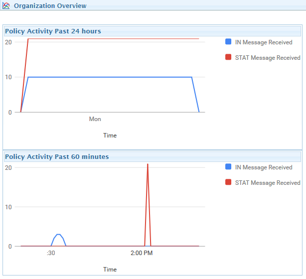 Once a domain, at least one policy with statistics recording configured (see Creating a Statistics and Tracking Policy Creating a Statistics and Tracking Policy), and mail flowing through the system, then data will be gathered and displayed in the Overview panel.