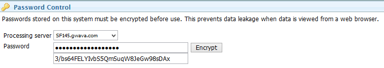 Passwords stored on this system must be encrypted before use. This prevents data leakage when data is viewed from a web browser.