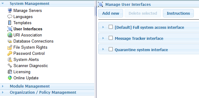 The Manage User Interfaces window allows administrators the ability to control the look and the login options of users for each interface.