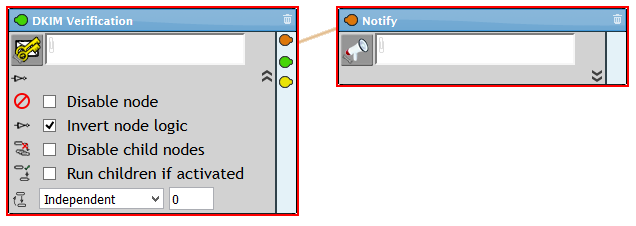 As the DKIM filter activates when a valid signature is detected, this node must be configured with 'Invert node logic' to detect messages that do not have a valid signature.
